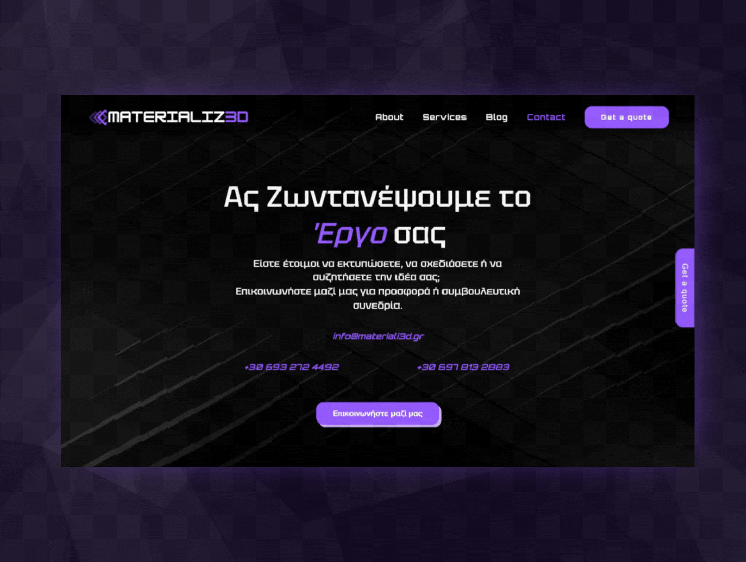 This project involved creating a high-end brand identity and logo for MATERIALIZ3D, followed by the development of their new Squarespace website. The design features sleek design elements and custom animations that complement the high-tech and modern visual identity of their brand.